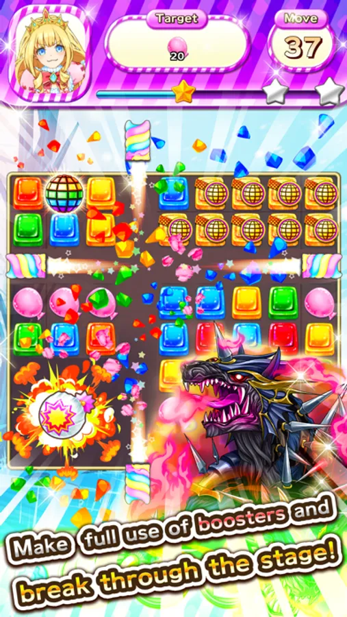 This is a 3-match puzzle game where three blocks of the same color are aligned to make them disappear, so it's easy for anyone to enjoy!