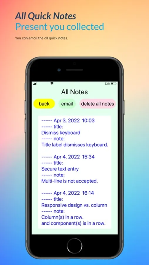 All notes page displays all data in a plain text format. Like Account info, email function is provided in All Notes page.