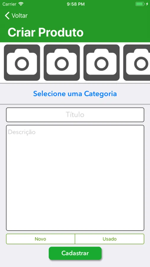 Para cadastrar o produto que deseja, é simples: adicione fotos, descrição e estipule um valor mínimo que queria receber nele e agora é só seguir os lances e fechar negócio!