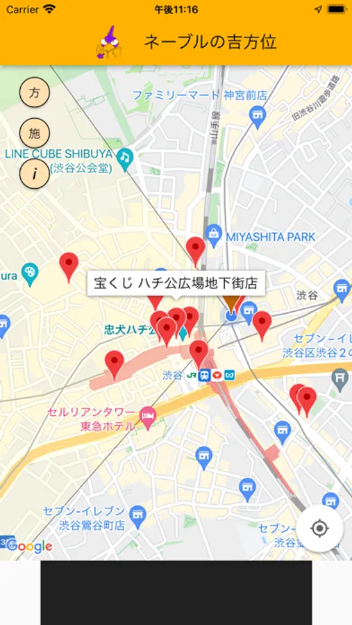 奥さんの「吉方の宝くじ売り場を探すのに使いたい」という要望を受け作りました。
