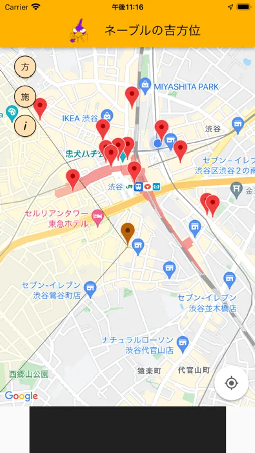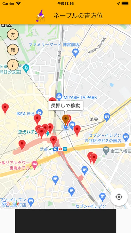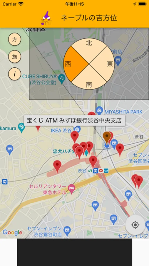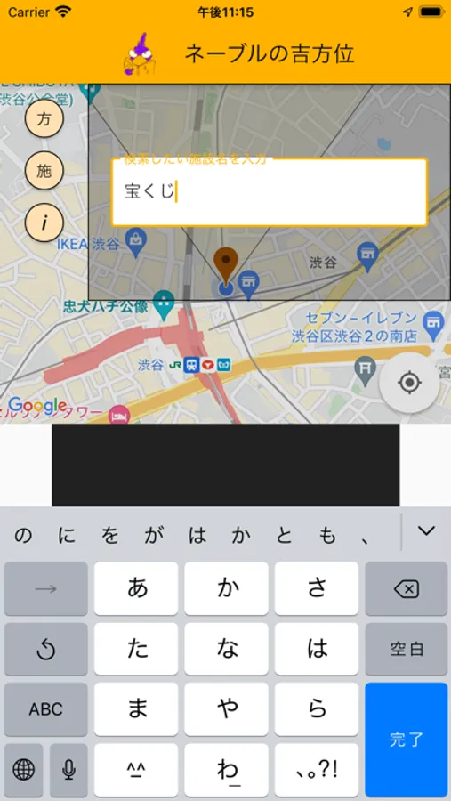 好きな位置から吉方位に含まれる施設を調べることができるアプリです。