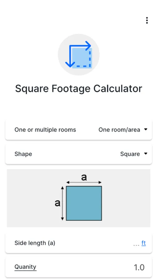 Square footage calculator turns length and width into an area and converts to/from multiple units.