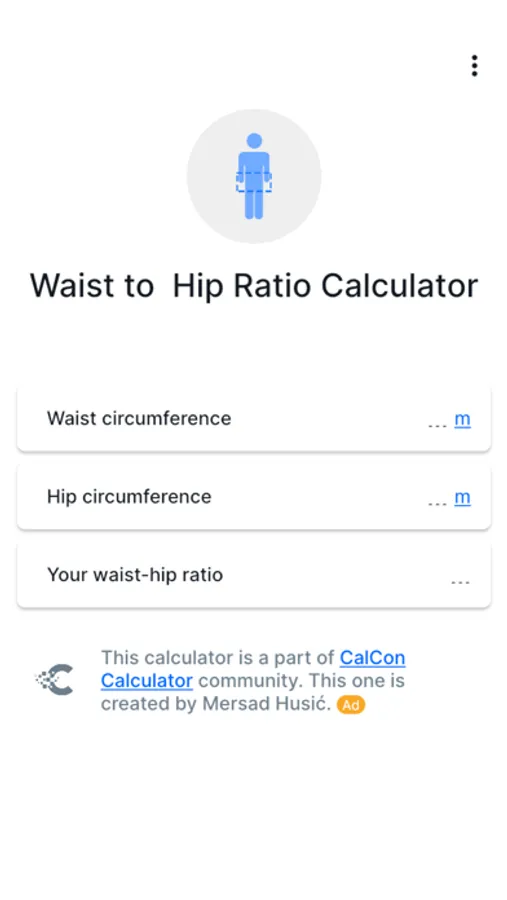 This calculator estimates the dimensionless ratio of the circumference of waist to that of the hips.