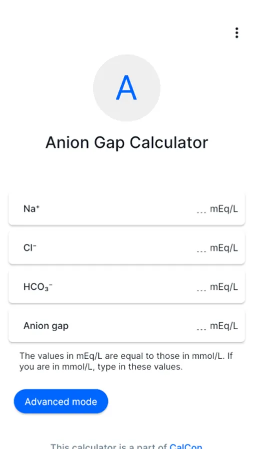 This calculator helps you estimate the anion gap based on sodium, chloride, and bicarbonate levels measured in blood serum.