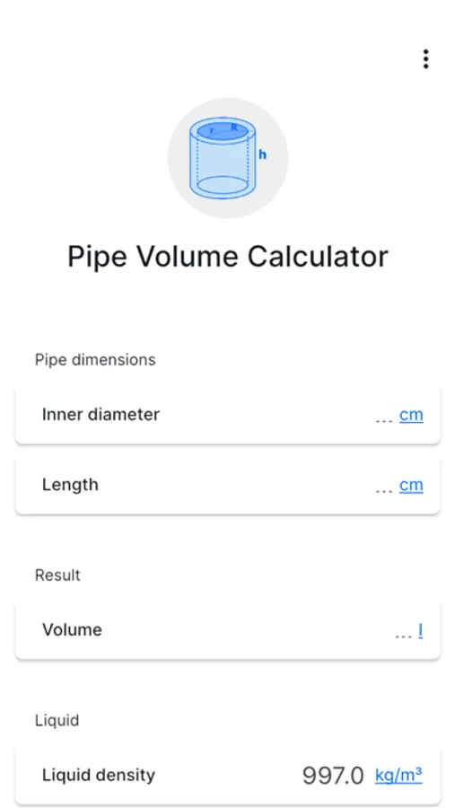 This pipe volume calculator estimates the volume of a pipe as well as the mass of a liquid which flows through it.