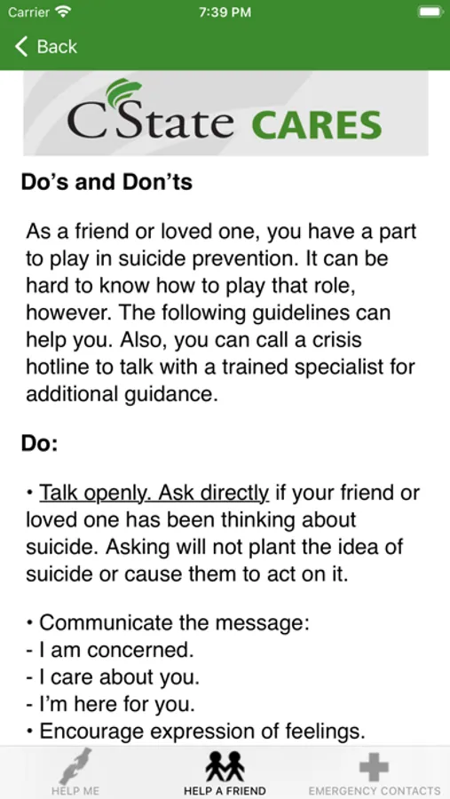 Cincinnati State's Reach Out app provides guidance for supporting a friend in need, suicide prevention, or coping with mental health challenges. With the “My Support Network” function, users can create a customized collection of just those contacts they especially want to quickly access and reach out to by phone or text during difficult times. Reach Out also provides easy and centralized access to potentially life-saving resources and services offered on campus and in the community, including crisis hotlines. The Reach Out app is designed for students, parents, friends of students, faculty and staff of Cincinnati State Technical Community College, located in Cincinnati, Ohio. The Reach Out app better prepares people to help a friend, loved one or themselves.
