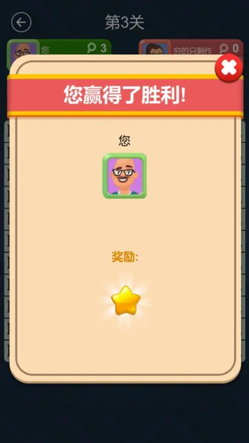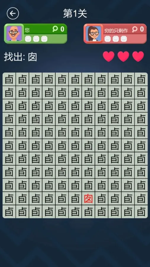 这是一款汉字找不同游戏,玩家可以通过匹配找到对手,跟他们比赛,看谁哒得又快又好,赢取胜利可以获得星星奖励。