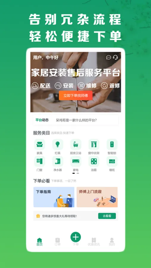 呆鸡哥商家版找安装师傅是智乘(浙江)网络科技有限公司为全国家居行业商家打造的一款下单APP。呆鸡哥一站式家居售后服务平台通过主流应用市场,广泛媒体资源,全面高效持续推广,聚合全国海量服务需求,商家用户免费发布订单。还可微信搜索公众号”呆鸡哥安装平台“关注后点击“我要下单”-“直接下单”即刻发布订单。