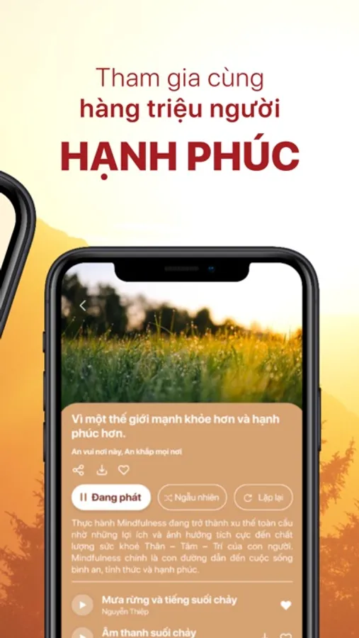 - Giấc ngủ: Thư giãn và tạo không gian an lành cho một giấc ngủ ngon với âm thanh thiên nhiên, tiếng ồn trắng giúp bạn hoàn toàn thả lỏng. Thiền buông thư giảm căng thẳng, xoa dịu tinh thần giúp bạn dễ dàng chìm vào giấc ngủ.