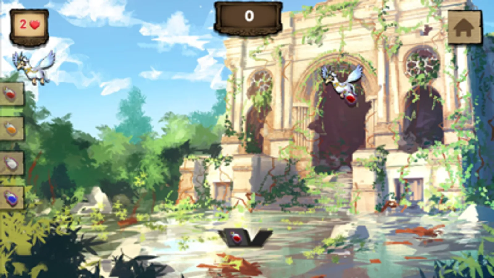 There is a bird flying in the sky that drops objects, below is the gift basket and the square of the gift you are choosing, you have a button to choose the type of gift, you have to move the gift basket to catch it. Get the correct item, 1 point right, 1 point wrong, or let the gift fall to the ground minus 1 life, for a total of 3 lives.