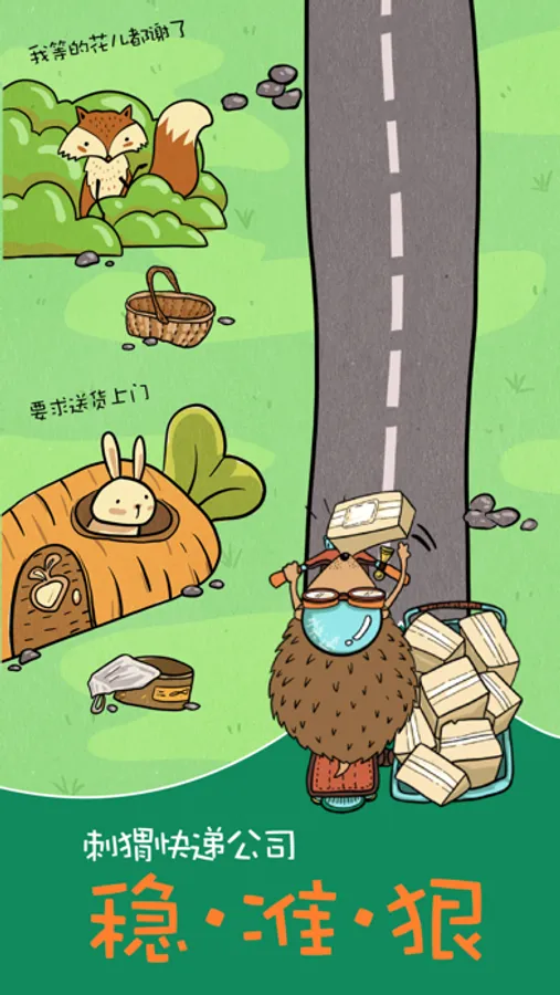 森林里的居民都富裕了,聪明的小刺猬看到了商机,成立了刺猬快递公司。