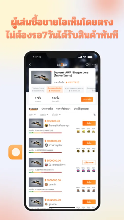แพลตฟอร์มเรารองรับการซื้อขายอุปกรณ์เกม CSGO เป็นหลัก ซึ่งพัฒนาโดยบริษัทท้องถิ่นในประเทศไทยและแปลเป็นภาษาไทยทั้งหมด โดยมีเป้าหมายเพื่อสร้างสภาพแวดล้อม การซื้อขายที่ยุติธรรม ปลอดภัยและดี