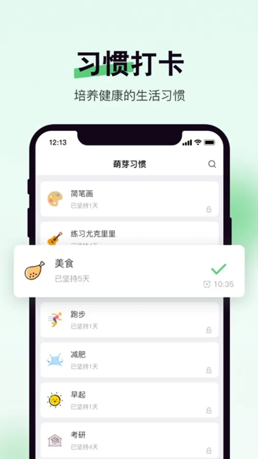 ·建立习惯并进行打卡记录,灵活地管理你的生活习惯,培养更多健康的生活方式。
