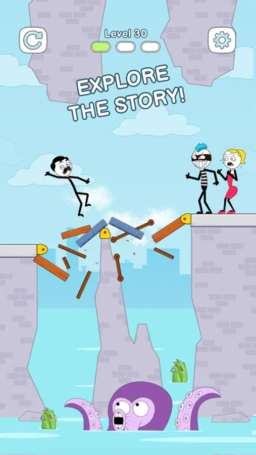 Bridge Puzzle is a real challenging for those in love with puzzle game! Can the stickman pass through the bridge!? It depends on your ingenuity and smart