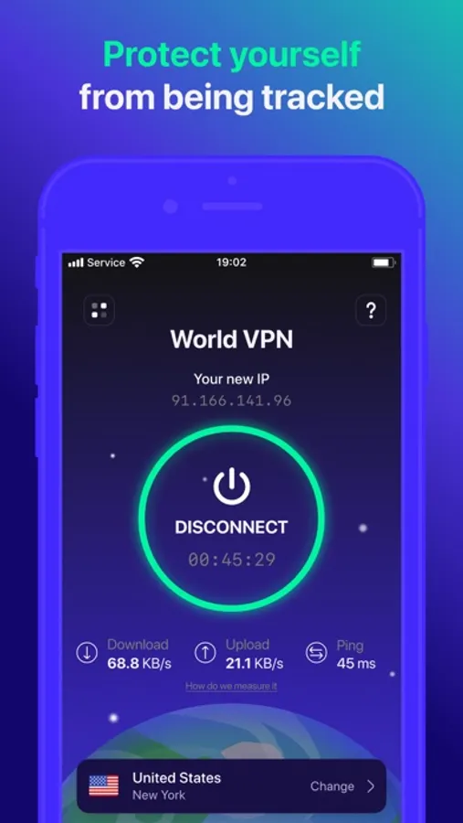 World VPN is your secure channel without limits. No need for any complex settings, just connect and disconnect with one button.