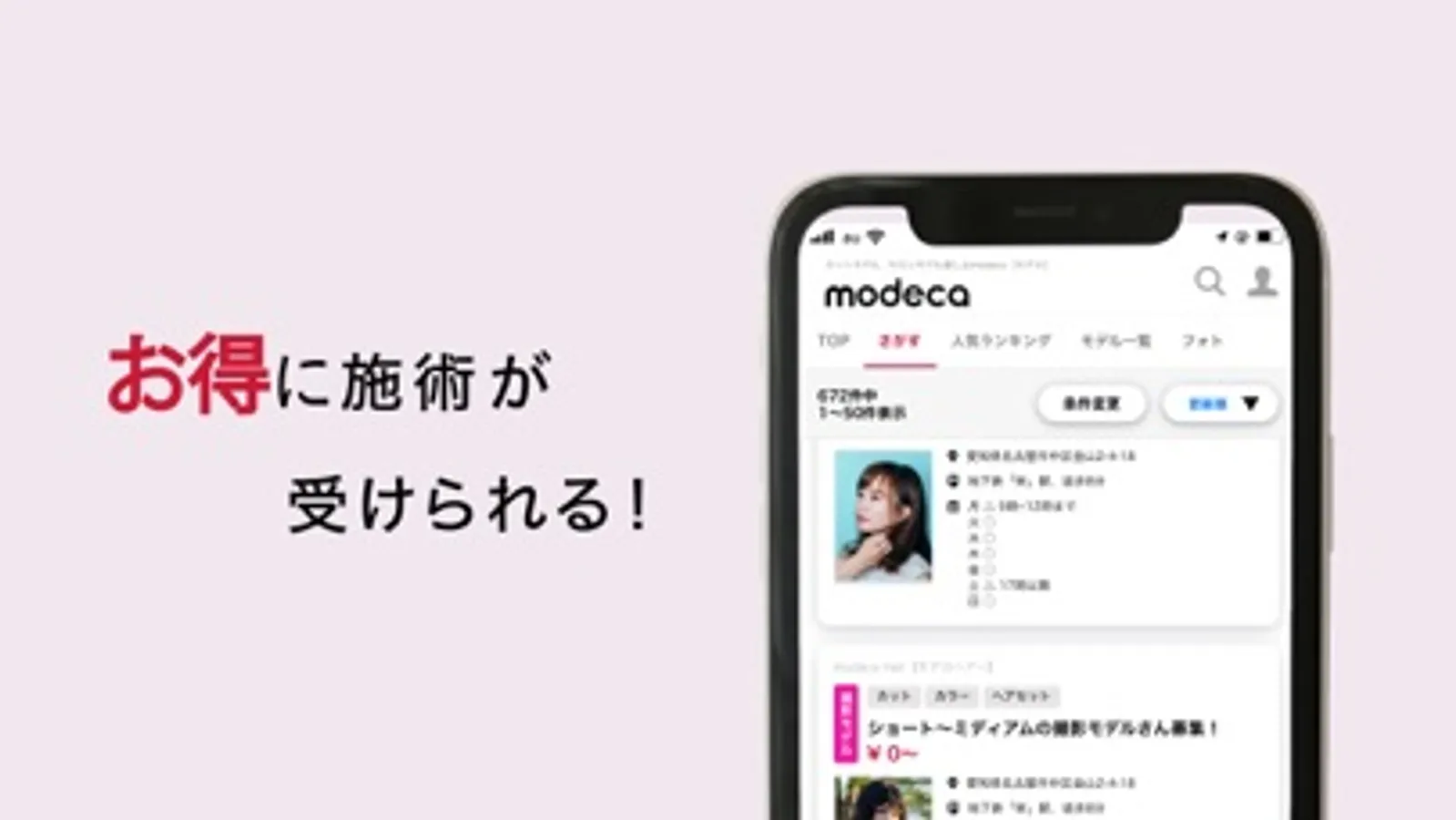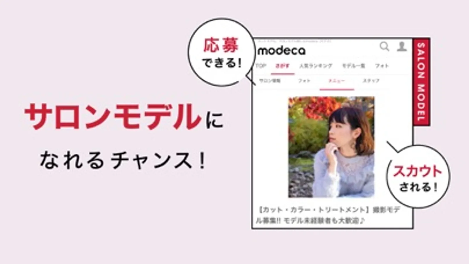 **美容サロンのモデル募集アプリ【modeca(モデカ)】**