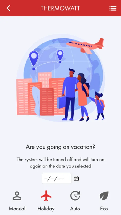 MyThermowatt allows you to control the temperature of your water heaters remotely, via Smartphone or Tablet. You can minimize waste by heating the water only when necessary, for example while heading back home from work, after practicing sports or before arriving to the vacation house.
