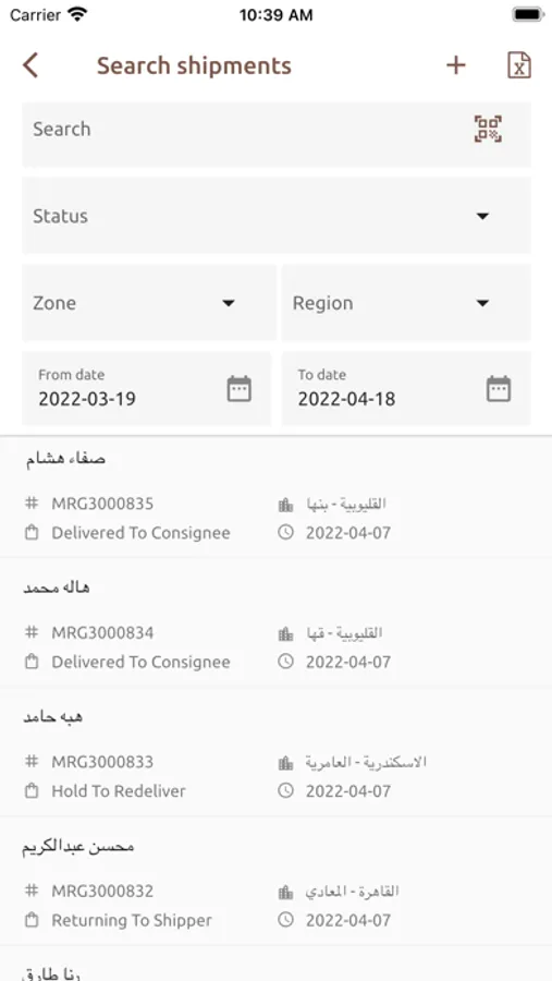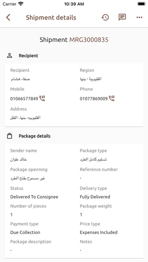 يسمح التطبيق لجميع العملاء في جميع أنحاء الجمهورية بإدارة تسليم واستلام الشحنات باستخدام الهاتف المحمول