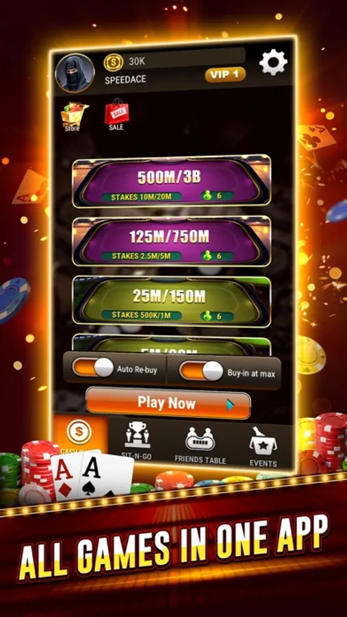 There are various Texas game in QQ Poker: Joining the cash table at any time to play with your friends; SIT-N-Go tournaments are open to buy-in to win big prize pool!