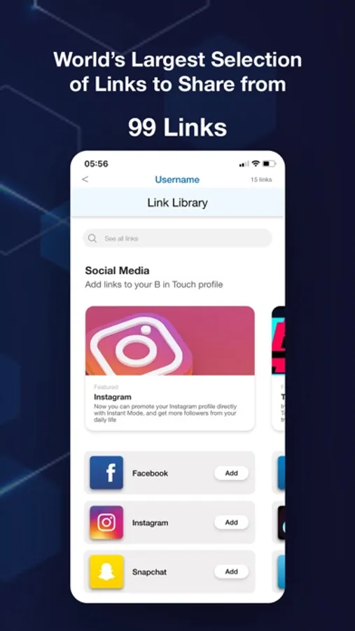 - Choose from over 99 different links and apps to add to your profile page or share directly with Instant Mode. New links added frequently