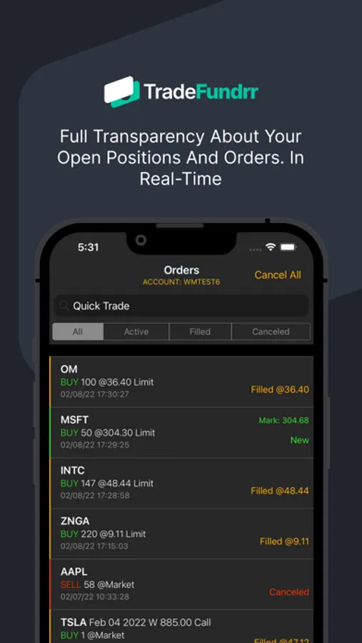 TradeFundrr’s Sterling Trader mobile provides access to stocks and options trading without any capital requirement on your side.