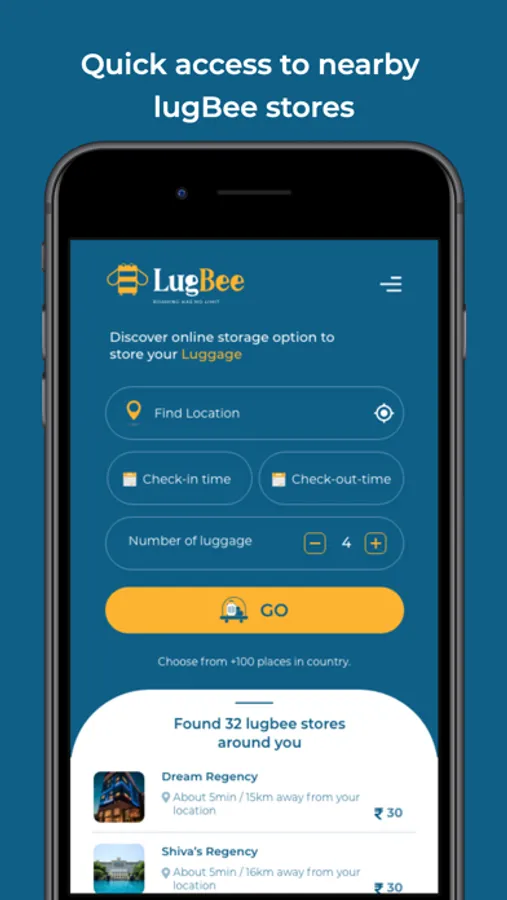 Near or far, for any duration, store your bags in just a few clicks through the 'LugBee App'. Now continue your fun on the trip or go with the work hands-free.