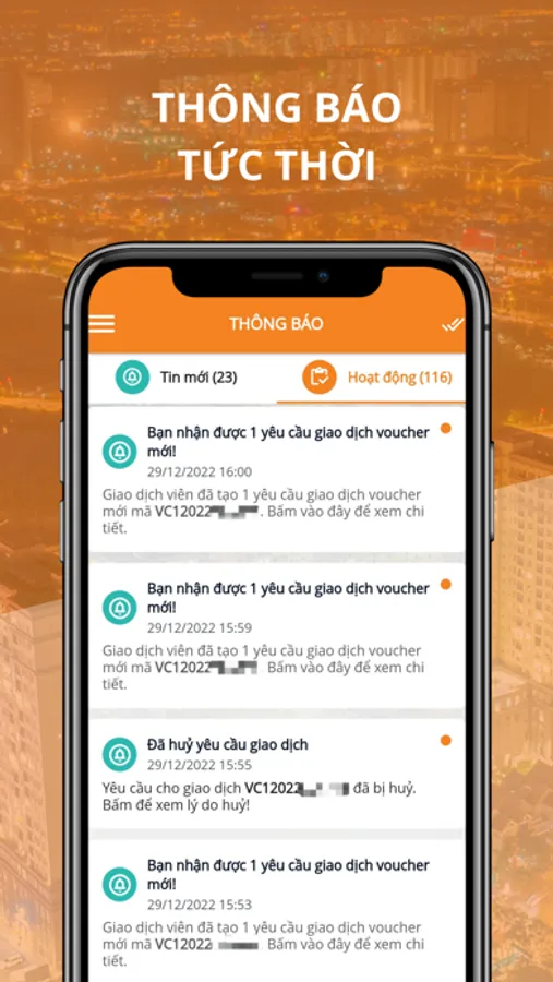 - Cập nhật trạng thái giao dịch tức thời để người dùng có thể theo dõi tình trạng giao dịch của mình.