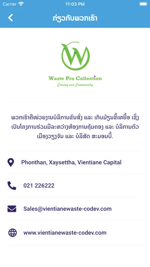 Vientiane Waste Co-Dev is a collect garbage application owned by Vientiane Waste Company in Laos.