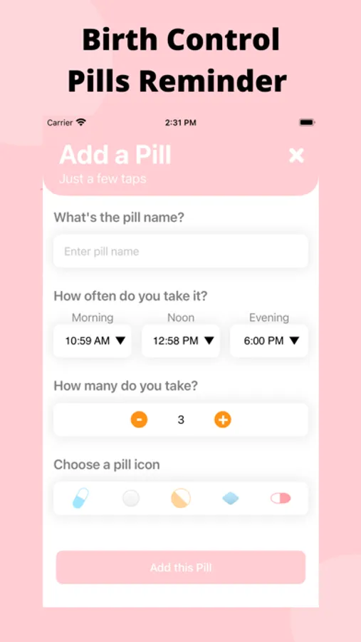 Schedule all your medications and vitamins in one app to customize your pills with different colors and notifications. We are here to help you not miss your pill times!