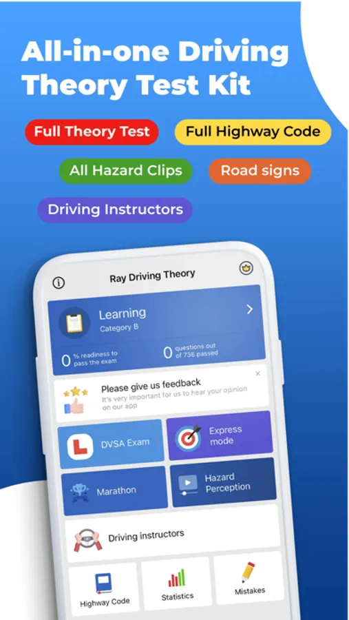 Ray.Driving Theory provides you with unlimited access to all revision questions, answers, explanations. Everything you need to pass the exam in one place!