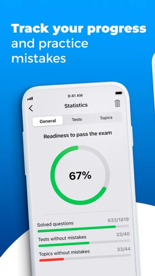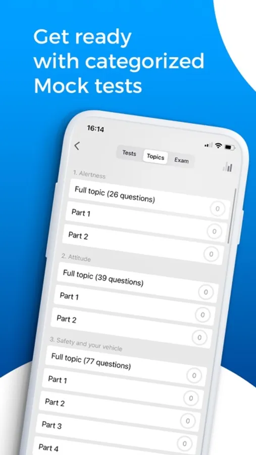 - different learning methods: by topics or in different modes, thanks to which thousands of users have passed their driving test on the first try - effortlessly and for free!