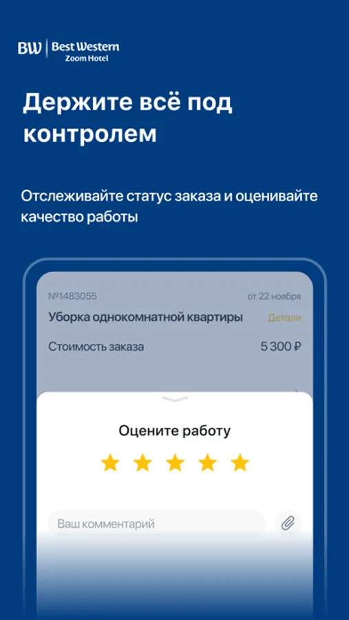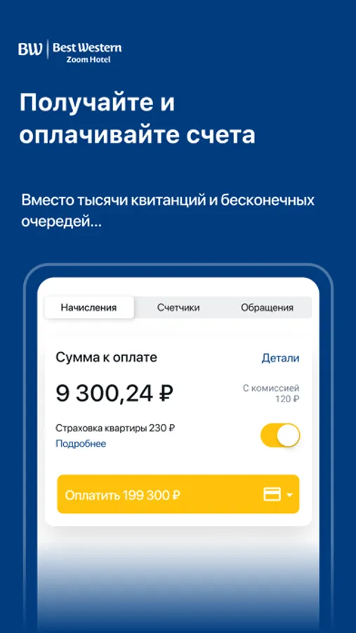 В приложении отображены все юниты, приобретенные в BW Zoom Hotel. Следите за доходностью вашего апартамента, работой Управляющей компании и последними новостями комплекса.