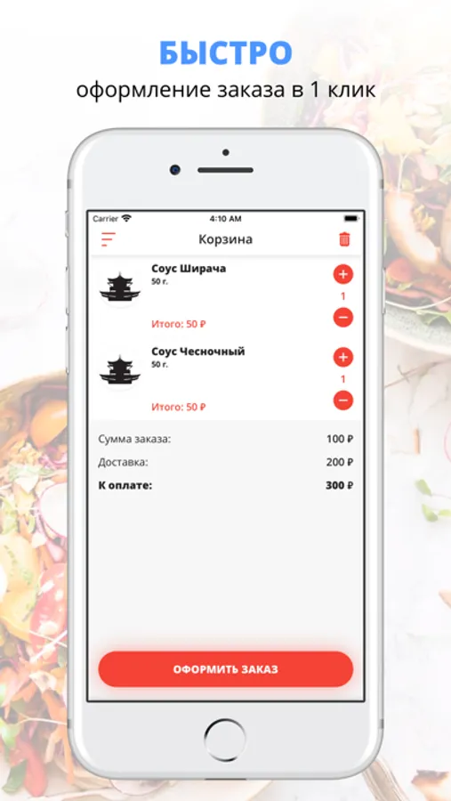 Скачивайте наше приложение, оформляйте заказ и наслаждайтесь любимой едой, где бы Вы ни были! Приятного аппетита!