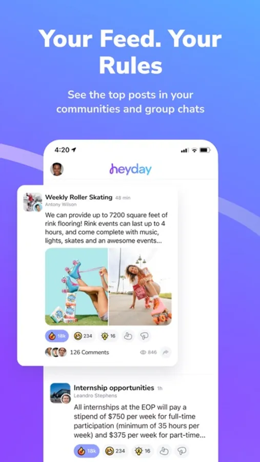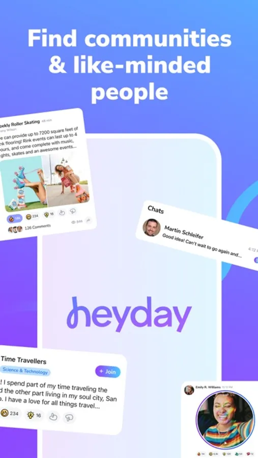 • Foster meaningful relationships: build authentic relationships with individuals who share your interests, and create lasting connections through Heyday's Reality Chats feature.