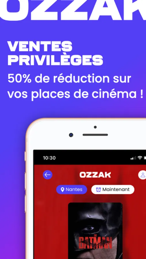 OZZAK est la première plateforme de ventes privilèges de places de cinéma. Réservez en toute simplicité votre séance de cinéma depuis l'application, et bénéficiez jusqu'à -50% de réduction sur les séances des cinémas proches de chez vous, ainsi que sur des événements exclusifs !