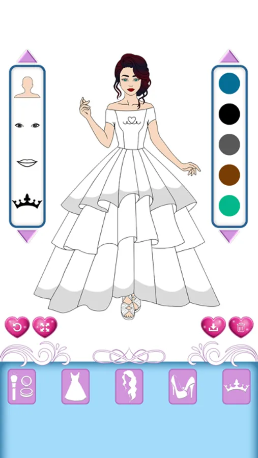 This app brings wedding dress up and coloring games for girls to the next level and combines them with wedding fashion coloring book games. Choose and paint bride and groom’s clothes, skin, hair and makeup in any color or glitter, become a wedding stylist in the wedding bride games. Select the background and enjoy an endless amount of free coloring pages for girls and adults!
