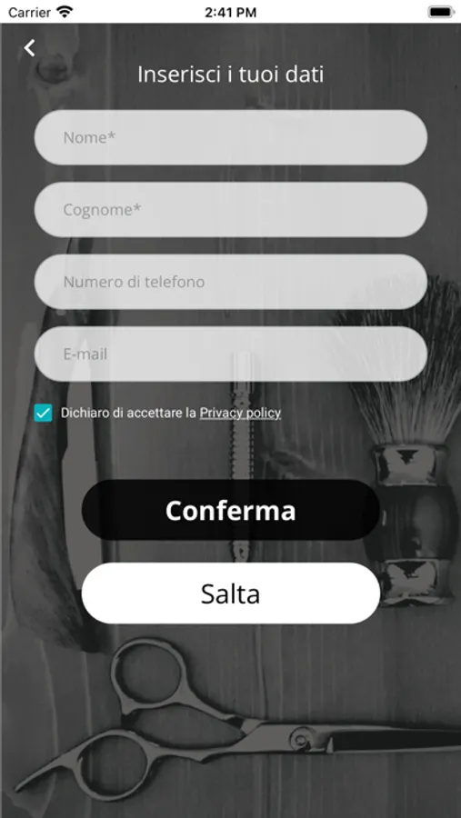 Inserisci i tuoi dati, scegli i trattamenti di cui hai bisogno e prenota all’orario a te più comodo.