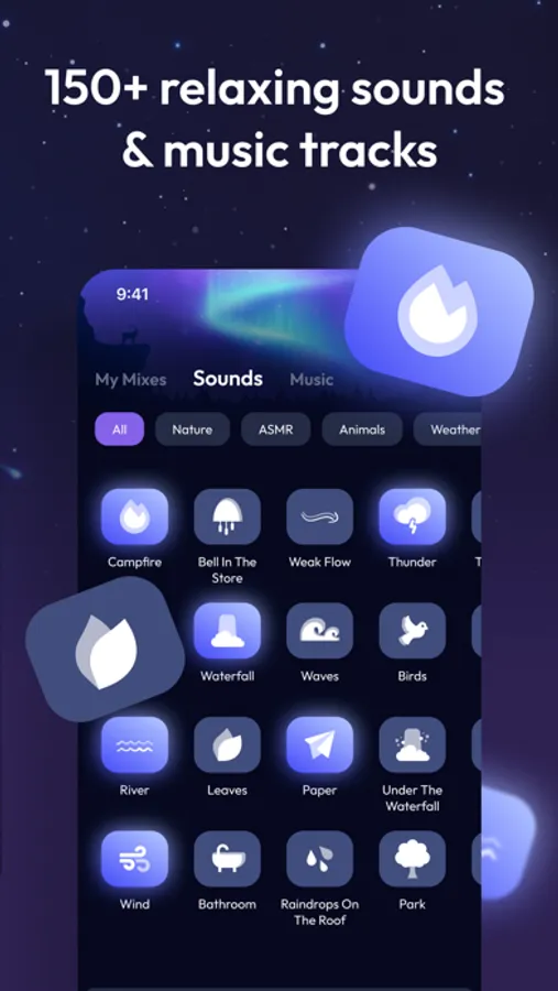 - 12 types of sounds: ASMR, Nature, Water, Animal, City, Sci-Fi and more.