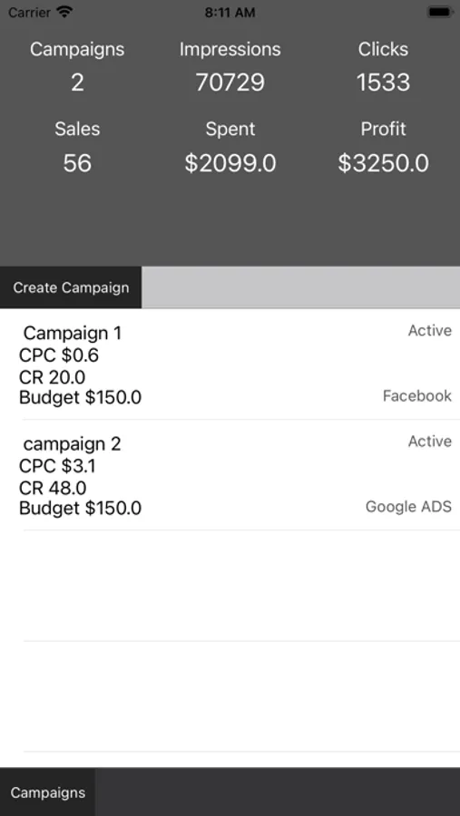 Advertisement Simulator offers campaign simulation of platforms like Facebook Ads, Google Ads and Apple Search Ads,