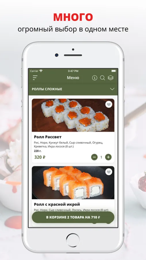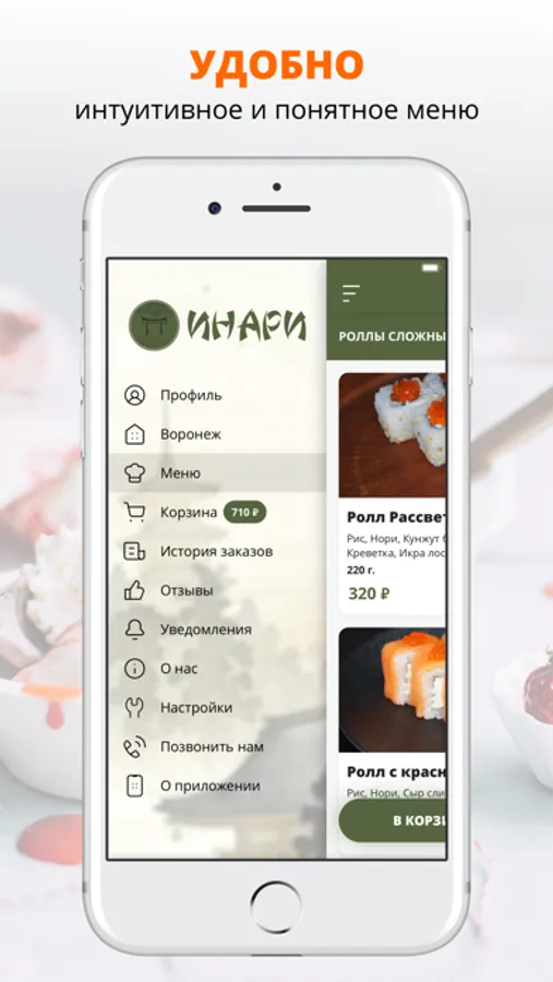 Приложение Инари — это удобный способ заказа еды домой или в офис! Мы готовим наши блюда из качественных свежих ингредиентов и доставляем еду по Воронежу быстро и бережно.
