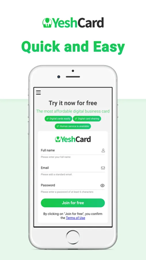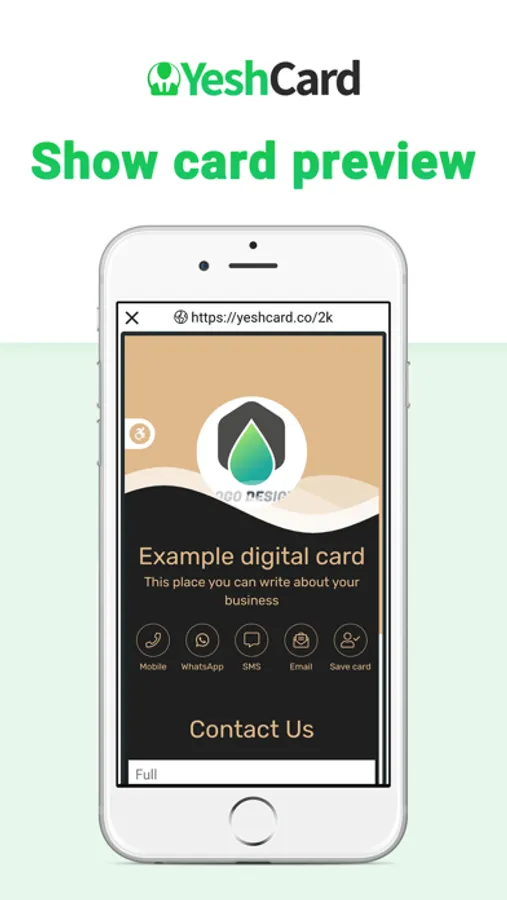 Hello and welcome to "Yesh Card", we provide you with the most affordable digital business card, through "Yesh Card" you have the ability to design a custom digital business card according to your needs. All you have to do is make a quick registration that takes less than a minute and that's it! You have a digital business card designed exactly for your needs.