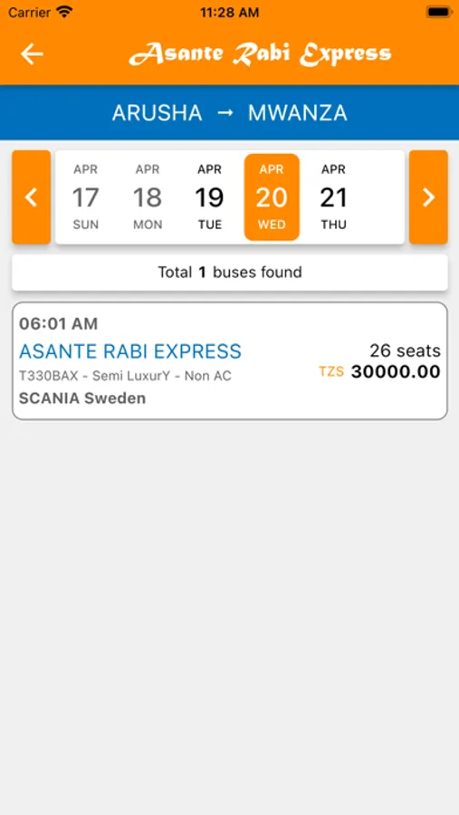 Asante Rabi Express is a bus service provider in Tanzania providing service on route around Arusha-Mwanza, Arusha- Singida, Arusha-Shinyanga, Arusha-Nzega, Mwanza-Singida and Mwanza-Arusha