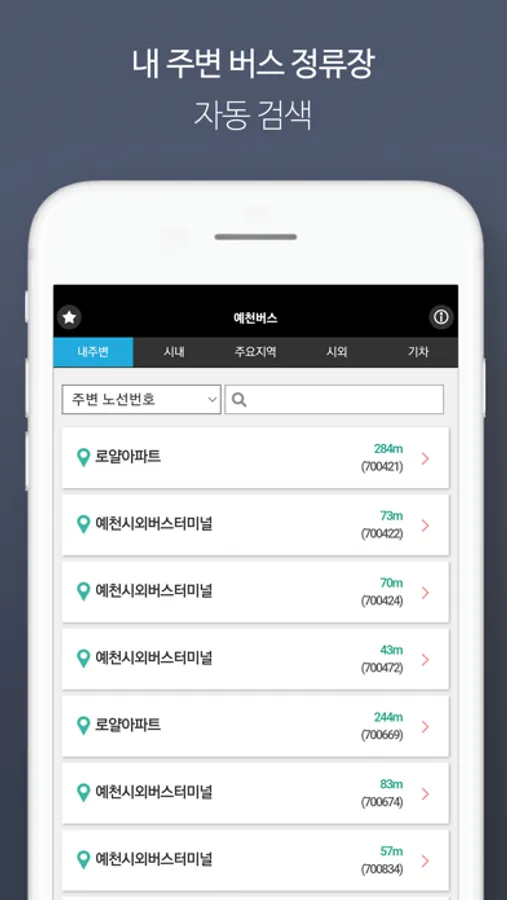 GPS 기반으로 사용자 위치에서 인접한 정류장 표시 및 정류장 거리 표시