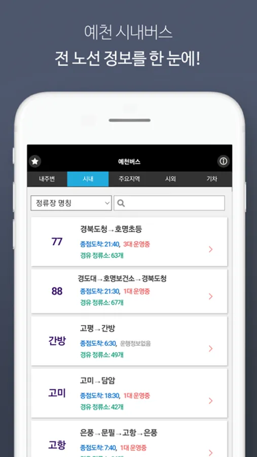 - 예천에서 출발하는 중요 방면 운행 정보 안내