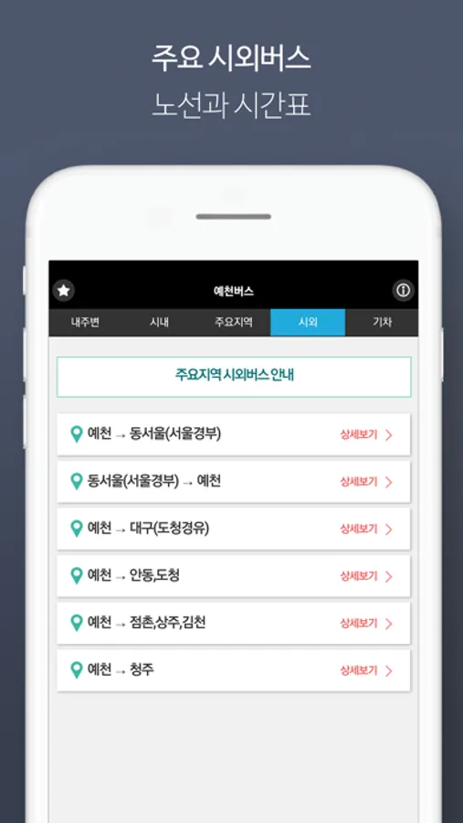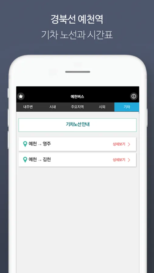 주) 앱 제작 시기에 따라 버스 및 기차 시간은 변동이 있을 수 있습니다.