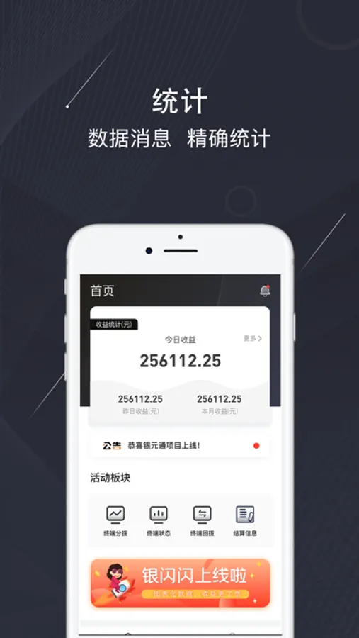 协助服务商高效管理商户、终端,清晰的查看各类数据分析.