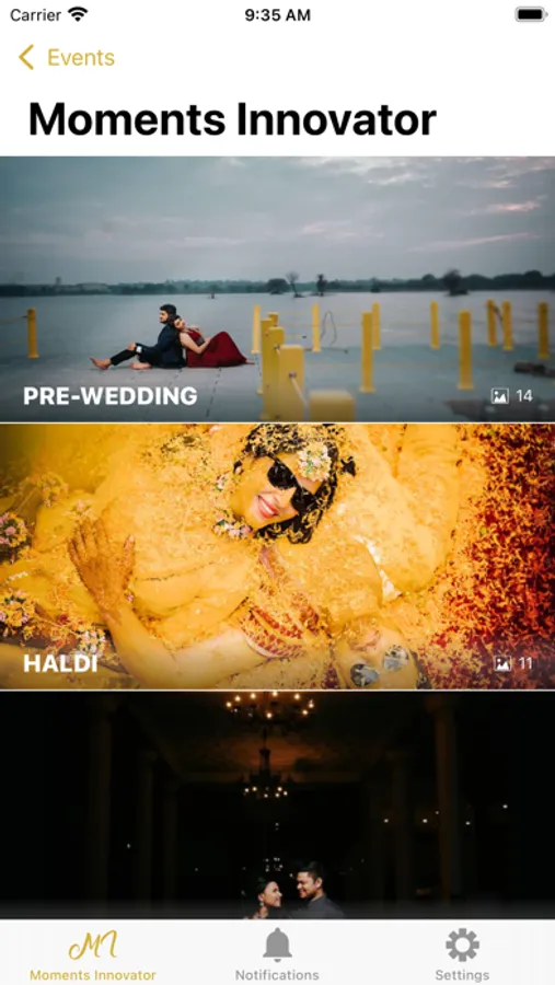 LIVE: Photos are Selected and shared by us instantly on the App. No more waiting for Weeks for your Event photos