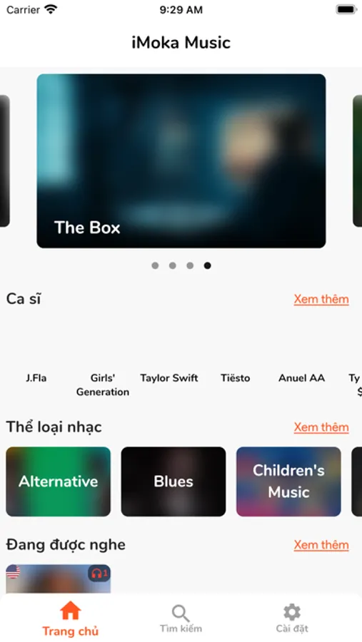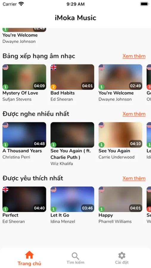 1. Hiển thị danh sách bài hát: bảng xếp hạng, bài hát yêu thích.
