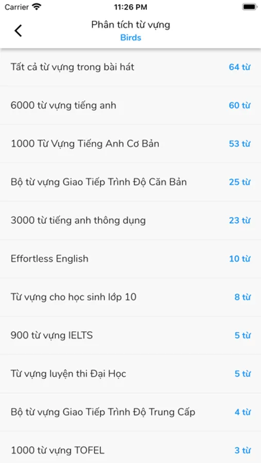 2. Hiển thị từ vựng gồm phiên âm, nghĩa tiếng việt cần học trong câu hát.