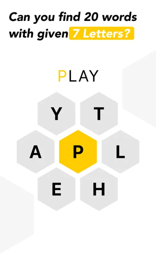 7Letters is a daily word puzzle of finding possible words which minimum 4 letters by using to given 2 vowels and 5 consonants also "Golden Letter" (yellow one, center of the honeycomb) is required. This Golden Letter can be vowel or consonant. You can use any letter in multiple times. In this finding process, you can find patterns of the words listed in alphabetical order. filled honeycomb symbol represents Golden Letter, empty honeycomb symbol represents any of other letters. Use the hint at the top to help figure it out.